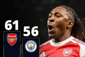 英超:阿森纳61分,曼城56分