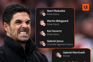 目前,哈弗茨、马杜埃凯、马丁内利、约克雷斯仍处于伤病未愈的状态,热苏斯刚刚回归训练,枪手一线队前锋仅特罗萨德和萨卡两人健康能够上场,中场梅里诺还客串出任首发中锋。