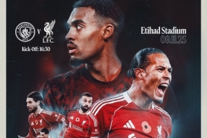 利物浦官方社媒发布了为此役制作的海报,范戴克、萨拉赫、赫拉芬贝赫、索博斯洛伊、埃基蒂克出镜。