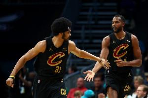 上半场比赛,骑士内线双塔进攻端都有贡献,但效率还得再提升点,其中小莫布里7中3,三分3中2,罚球4中3拿到11分4篮板1助攻;阿伦6中3,罚球6中4拿到10分5篮板2助攻1盖帽。