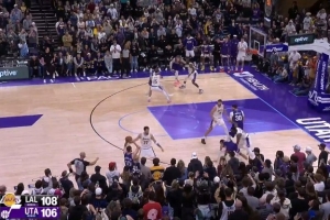 当时湖人108-106领先爵士2分,爵士错失了扳平比分的机会。