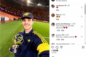 此役赖斯为阿森纳踢满全场表现出色,当选全场最佳球员,赖斯社媒晒出手拿全场最佳奖杯的照片,庆祝球队取胜。