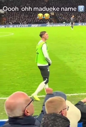 英超第13轮焦点大战,伦敦德比切尔西主场1-1战平阿森纳。此役马杜埃凯替补登场,当切尔西球迷嘘旧将马杜埃凯时,场边的帕尔默做出点头“起哄”的反应。