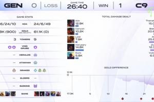 体育资讯12月6日讯 Kespa杯今日正式打响,在Chovy、Ruler缺席的情况下,GEN被C9打成6-24。