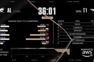 体育资讯10月31日讯 S15八强赛T1首局击败AL,Gumayusi首局使用韦鲁斯打出35k的全场最高伤害。