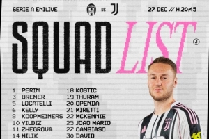尤文客战比萨大名单:伊尔迪兹、戴维、米利克在列,孔塞桑缺席
