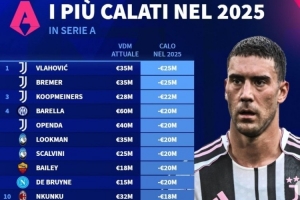 意甲2025身价跌幅榜:DV9领衔尤文4将 巴雷拉、卢克曼、恩昆库在列
