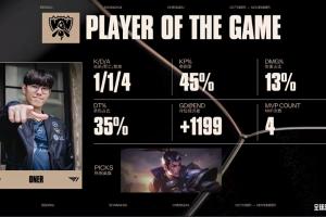 体育资讯11月2日讯 S15四强赛T1首局击败TES,Oner凭借赵信在对局里的完美表现斩获MVP!