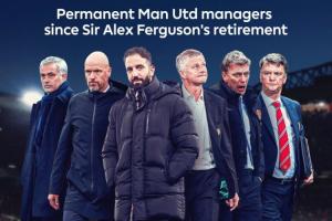 英超官方对比弗格森后曼联各主帅治下数据:阿莫林31.9%胜率垫底