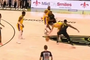 GIF-锡安防守打到东契奇私密部位 后者略显难受