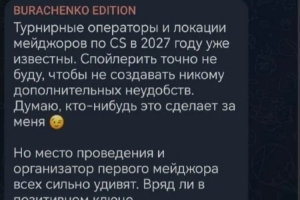 体育资讯1月16日讯 根据独联体内幕人士、前Pari的电竞部门负责人BURACHENKO的爆料,2027首届Major的举办地点和主办方已确定,且会让所有人都大跌眼镜,大概率不是好消息。