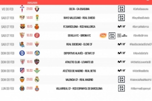 体育资讯1月20日讯 西甲官方公布了第23轮比赛的开球时间。2月7日23点15分巴萨vs马洛卡、2月9日4点瓦伦西亚vs皇马。